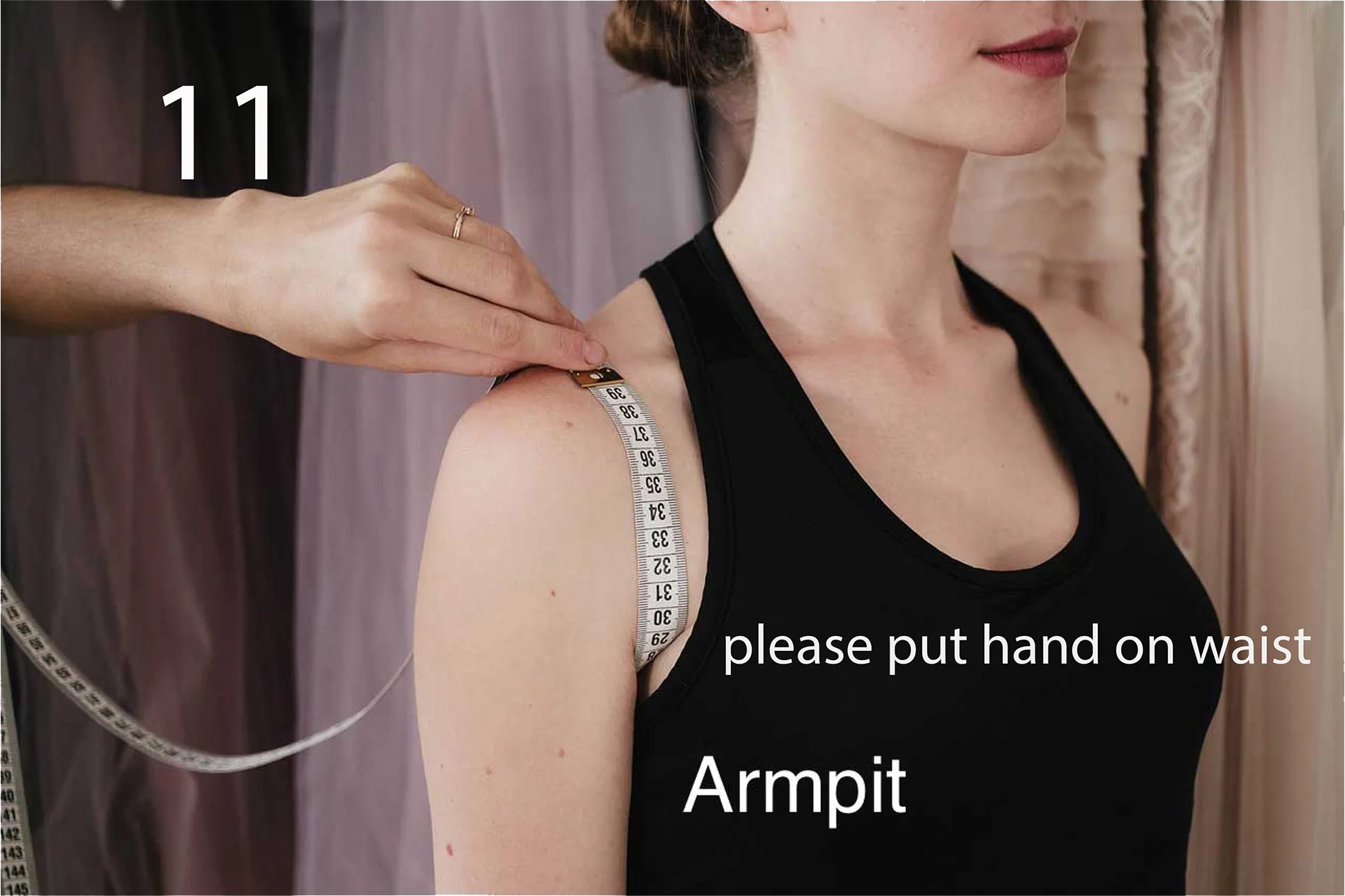 Please wear your favorite bra and shoes while having the measurements taken. Along with the measurements, I also need 3 photos of you wearing tight clothes such as workout clothes as reference for making the dress (front, back, and side)